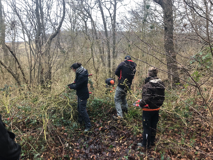 En janvier, une intervention a été menée sur une parcelle forestière en lien avec les équipes des Maisons des forêts afin de récolter du buis attaqué par la pyrale*. Le bois a été coupé et tronçonné, puis mis à disposition des participants dans les locaux de Fibois à Rouen).